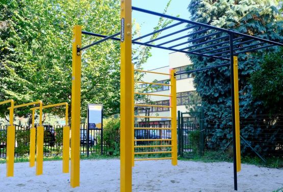 Odwiedź ulicę Sadzawki w Krakowie, gdzie Szkoła Podstawowa nr 64 wzbogaciła się o zestaw Standard S do Street Workoutu. Park do street workoutu wyróżnia się żółtymi konstrukcjami i czarnymi drążkami oraz poziomą drabinką, które stanowią klasyczny element wyposażenia naszych parków. Piaskowa nawierzchnia dodaje naturalnego charakteru miejscu i zapewnia dodatkową amortyzację podczas treningu.