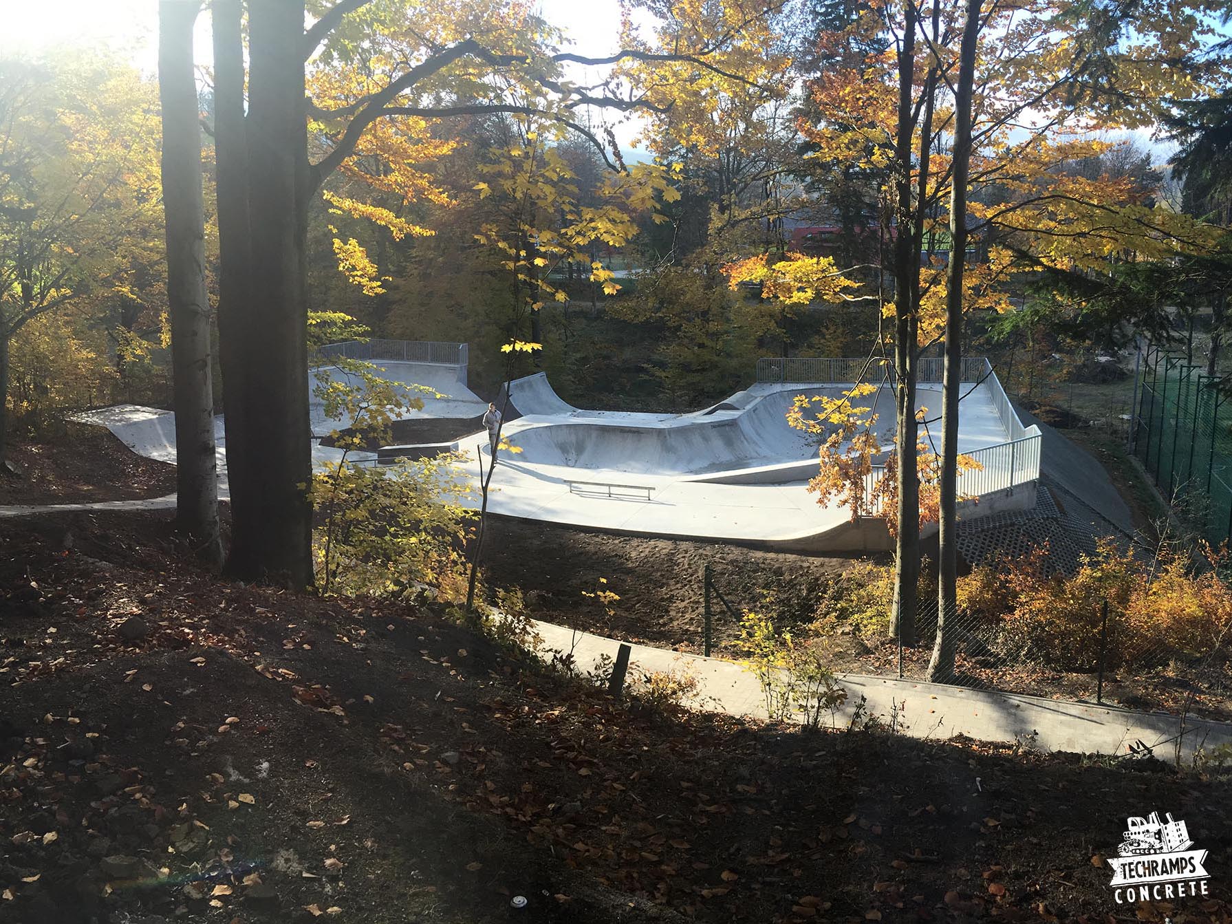 Skatepark w Szklarskiej Porebie zlokalizowany został przy ul. Okrzei na placu o powierzchni 600 m2. Obiekt wykonany w technologii betonowej. Ten skatepark betonowy został oddany do użytko w 2015 roku. Składa się z 9 elementów w tym dużego bowla o dwóch głębokościach i sporego funboxa. Projekt przygotowało biuro Slo Concept.